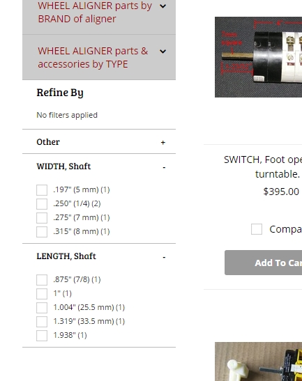 We are dedicated to being the easiest place to find the right parts you need the first time. Two website tools we have to help you do that are Product Comparisons and Product Filtering. Here are screenshot examples of how these tools can be used to find the correct Electrical Switch for a Tire Changer.